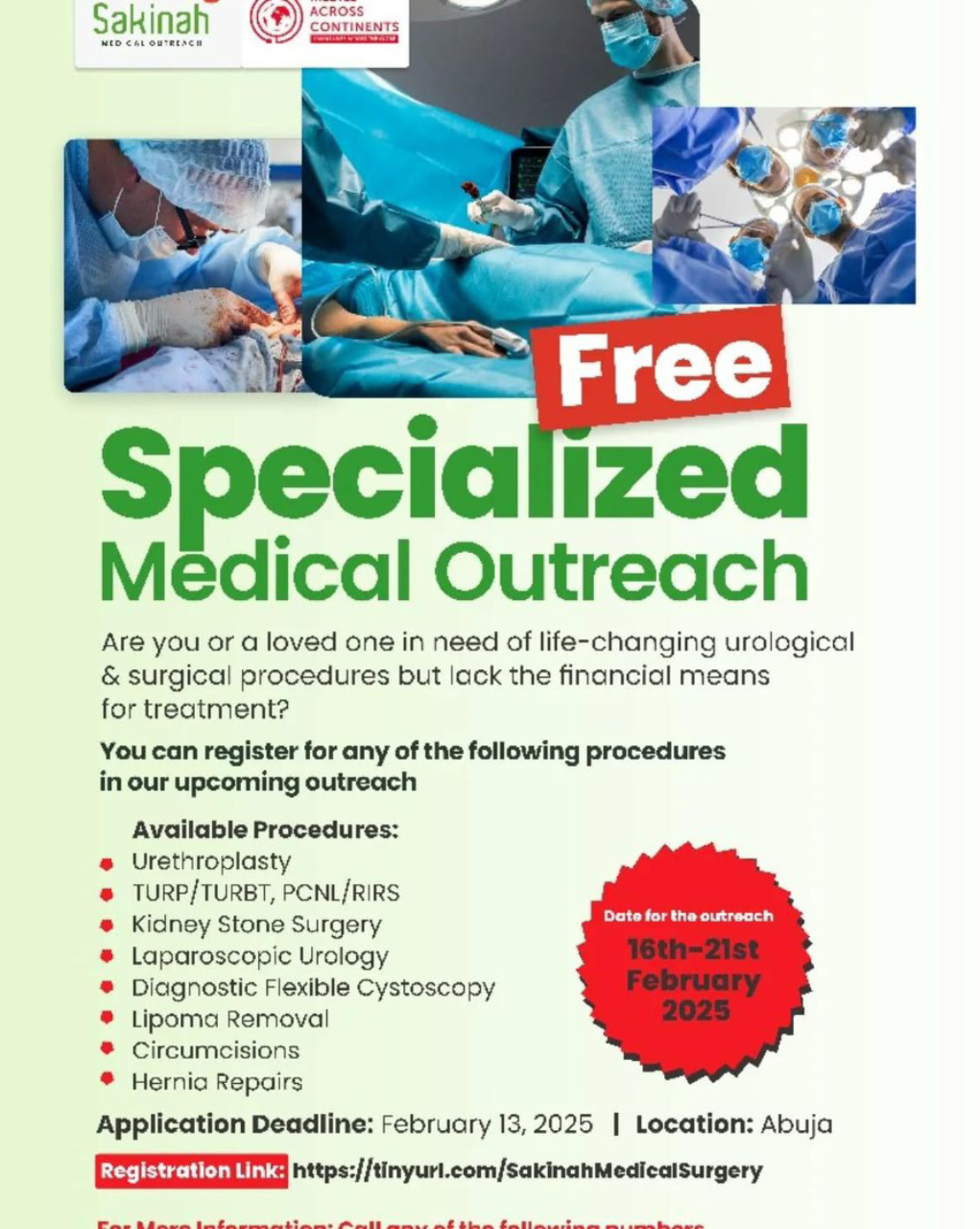 Sakinah Medical Outreach (SMO) has announced its latest medical mission, set to take place from February 16 to 21, 2025, at the National Hospital Abuja.